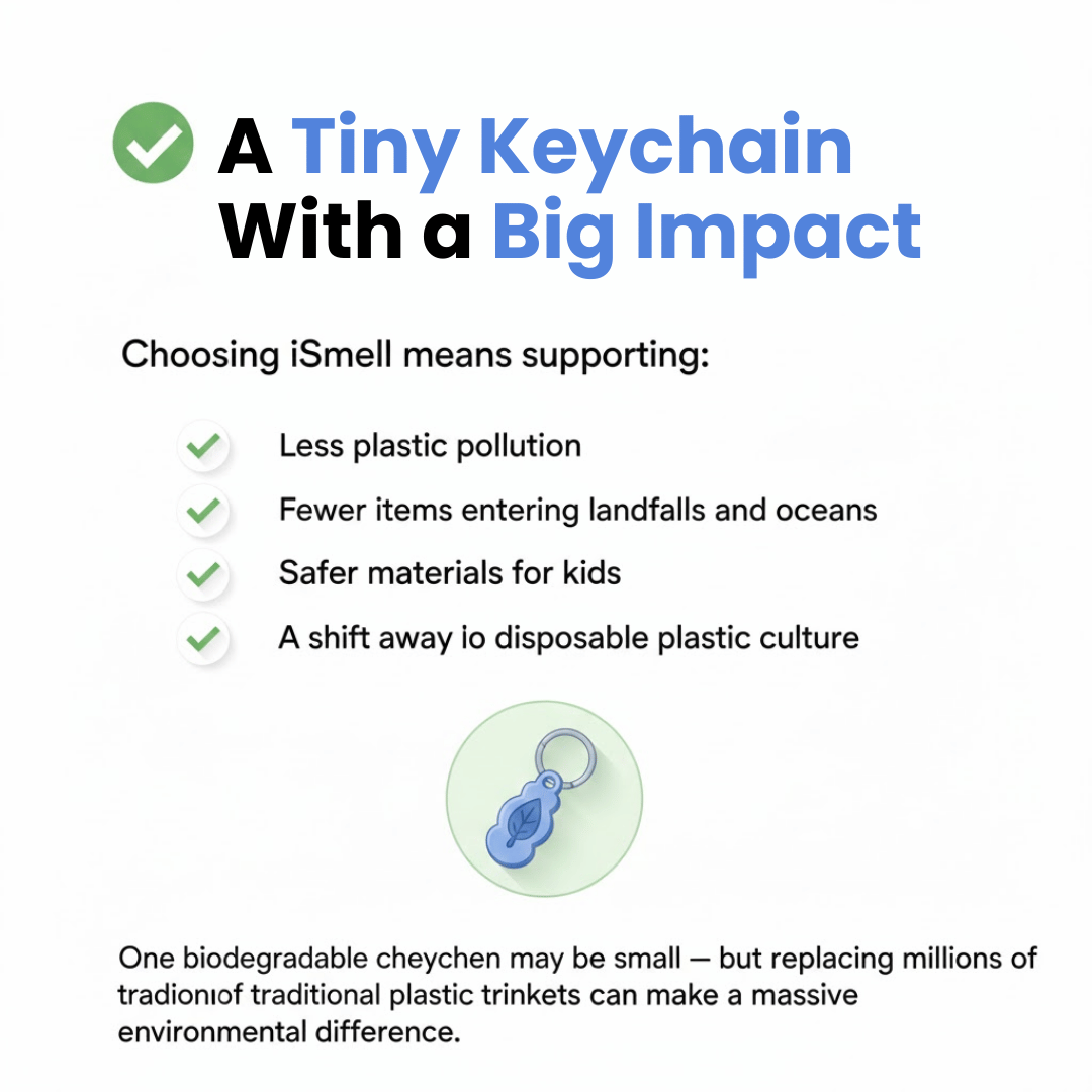 iSmell keychains are created using next-generation biodegradable bioplastic designed to return to nature safely.